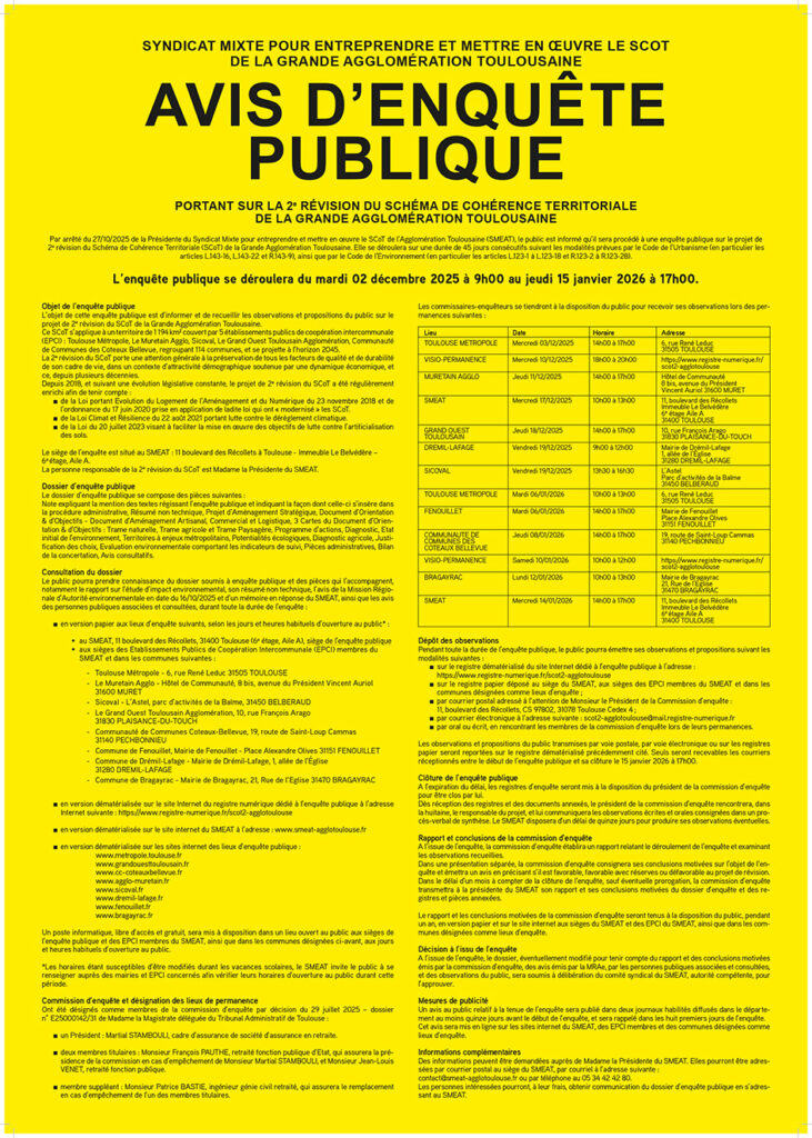 ENQUÊTE PUBLIQUE, 2nd révision du SCOT de la grande Agglomération Toulousaine