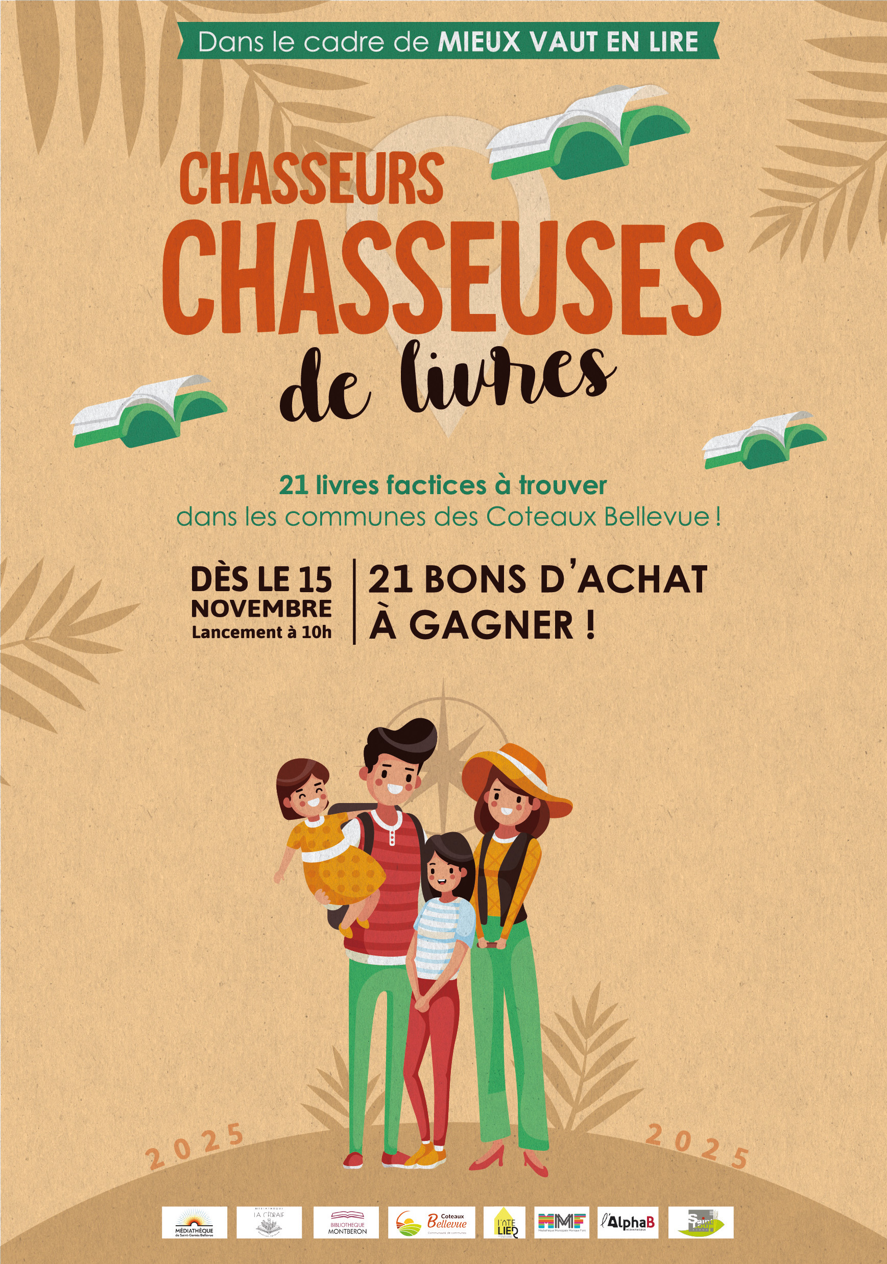 À l’occasion de « Mieux vaut en lire », salon du livre jeunesse de Pechbonnieu, la communauté de communes des Coteaux Bellevue organise une chasse aux livres, à partir du 15 novembre 2025, en partenariat avec les médiathèques du réseau MéMo et la commune de Saint-Loup-Cammas.