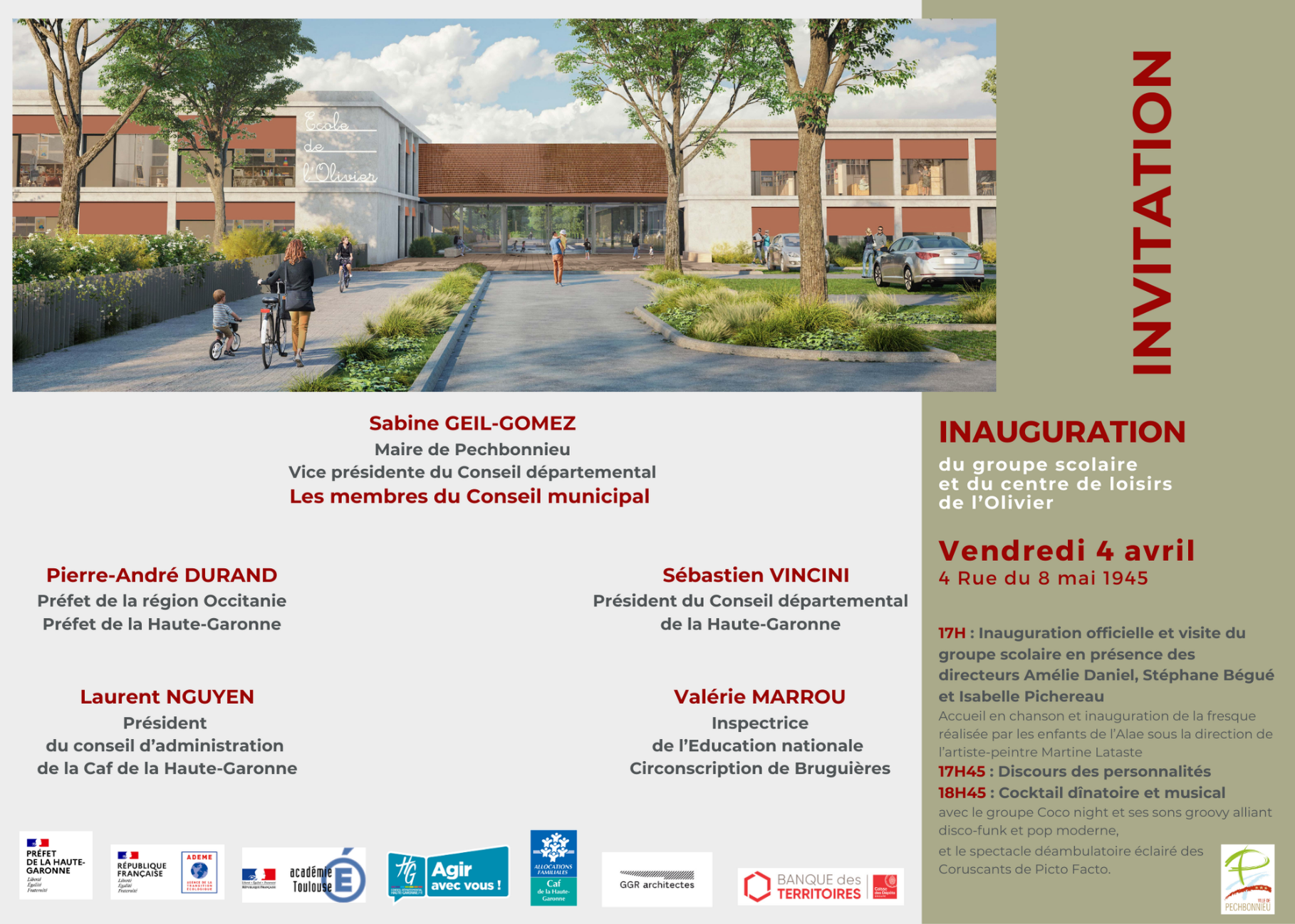 Rendez-vous le vendredi 4 avril 2025 à 17h pour assister à l’inauguration du groupe scolaire et du centre de loisirs de l’Olivier – 4 rue du 8 mai 1945 à Pechbonnieu.